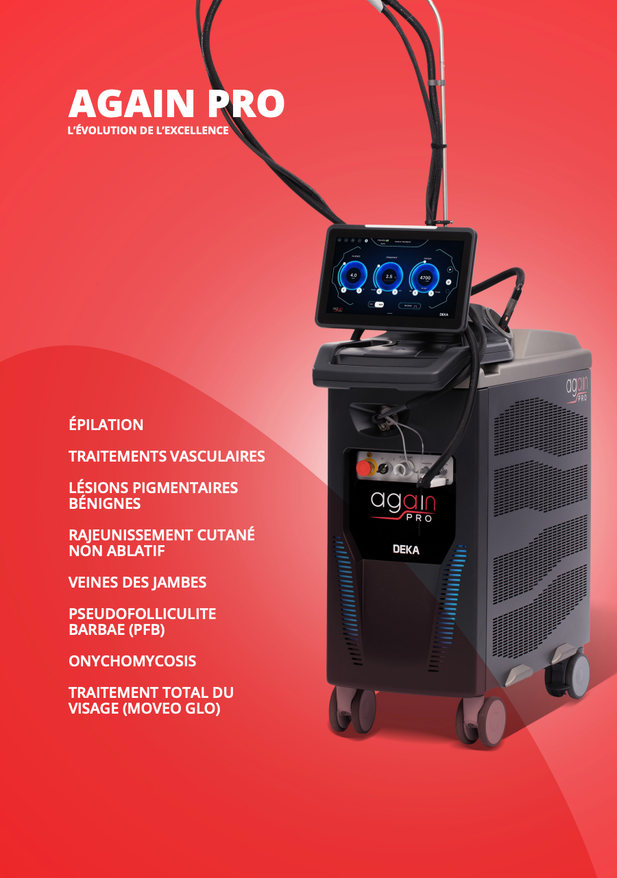 Dans le cadre de ma pratique, j’ai choisi de m’équiper de la technologie AGAIN PRO, développée par DEKA, un acteur de référence internationale dans le domaine des dispositifs médicaux esthétiques.